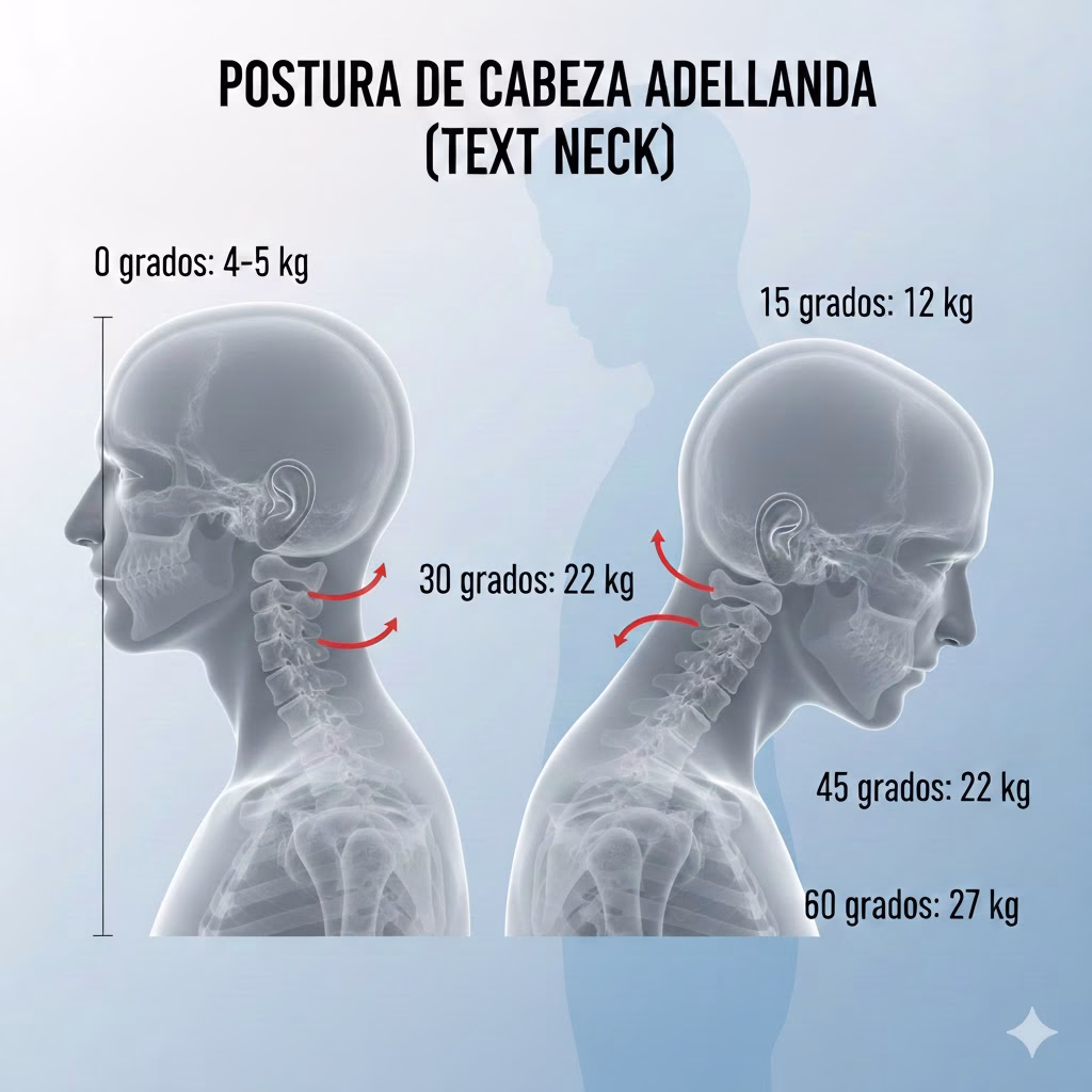 Vivimos en una era de cabezas adelantadas. Mirar el móvil o trabajar horas frente al ordenador genera una tensión brutal en la columna cervical superior (justo en la base del cráneo).